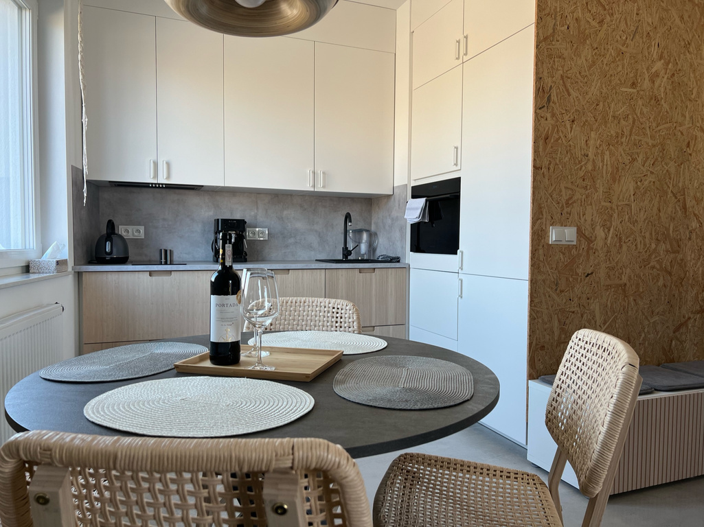 Nasz apartament oferuje eleganckie i nowoczesne wnętrza, które zapewnią Ci komfortowy pobyt. Przestrzeń została starannie urządzona, aby zapewnić Ci wszystko, czego potrzebujesz, od momentu wejścia. Jasne i przestronne pokoje są gustownie urządzone, abyś czuł się jak w domu.