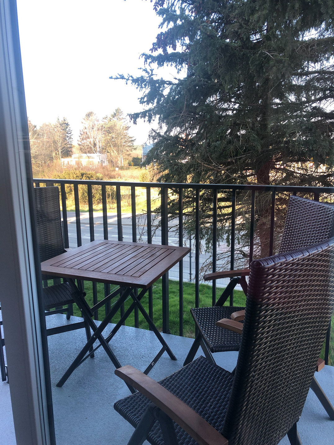 Balkon został urządzony tak, aby zapewnić maksymalny komfort i relaks.