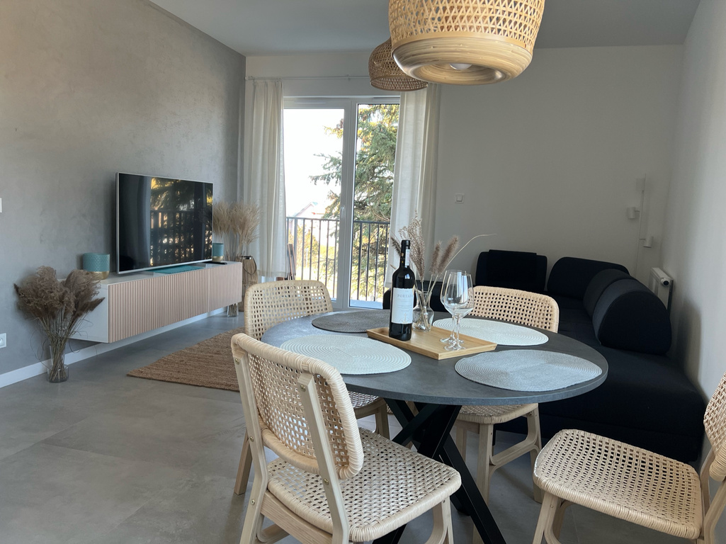 Nasz apartament oferuje eleganckie i nowoczesne wnętrza, które zapewnią Ci komfortowy pobyt. Przestrzeń została starannie urządzona, aby zapewnić Ci wszystko, czego potrzebujesz, od momentu wejścia. Jasne i przestronne pokoje są gustownie urządzone, abyś czuł się jak w domu.